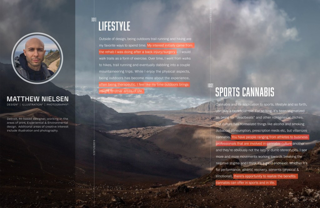 We have the absolute pleasure of introducing the newest addition to the Sports Cannabis Team, Matthew Nielsen. With his deep background in Graphic Design, Illustration and more, Matt has joined on as a creative content contributor in an effort to create stunning visuals, break the stigma and normalize the conversation.