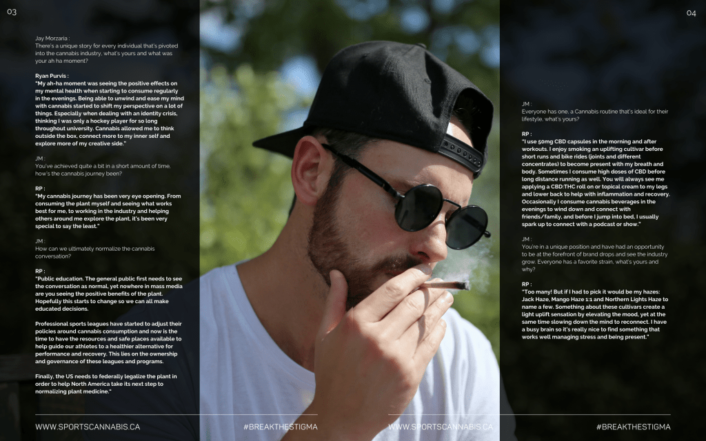“My ah-ha moment was seeing the positive effects on my mental health when starting to consume regularly in the evenings. Being able to unwind and ease my mind with cannabis started to shift my perspective on a lot of things. Especially when dealing with an identity crisis, thinking I was only a hockey player for so long throughout the university. Cannabis allowed me to think outside the box, connect more to my inner self and explore more of my creative side.“