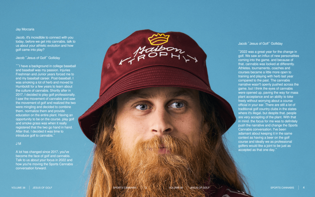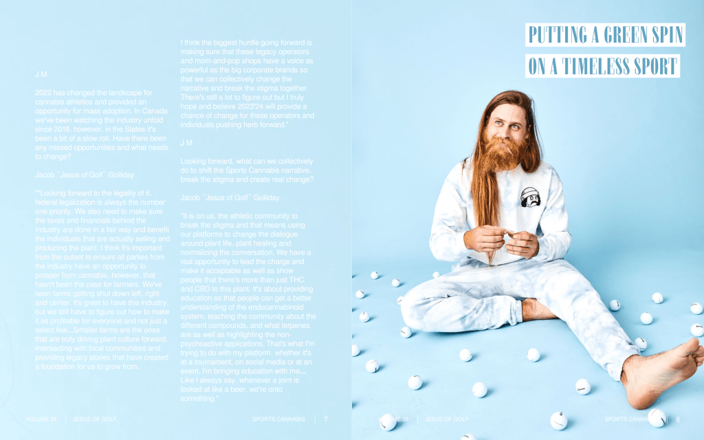 Today, Jacob’s changing the game of golf, one puff at a time, breaking the stigma, and educating athletes around the globe about the profound effects cannabis has had on his career. Taking names and playing with a green handicap, Golliday is defying outdated mentalities and hitting potent shots with a tour bag filled with the highest-grade trees.