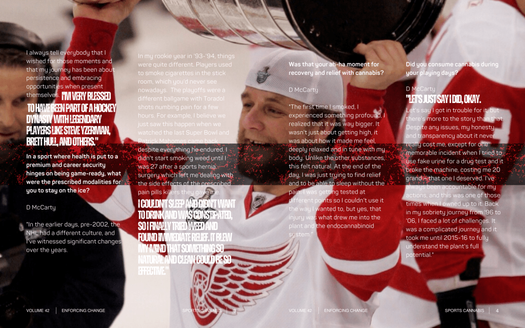 Retired Four-Time Stanley Cup Champion, Detroit Red Wings legend, cannabis advocate and entrepreneur Darren McCarty is enforcing change.
